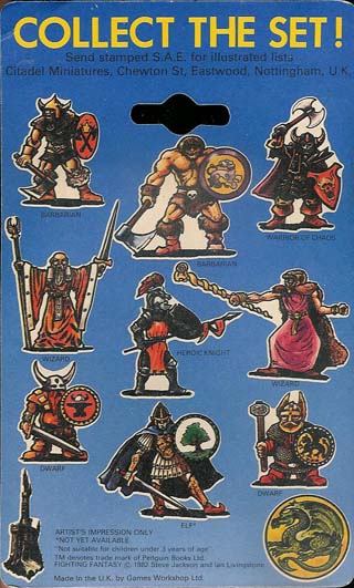 s'agit d'un jeu édité par Games Workshop en 1985, basées sur la série Fighting Fantasy (défis fantastiques). il en est question pour la première fois dans Warlock 5 et 6. il etait possible, outre les figurines, d'acheter un kit pour les peindre, et un set de dés + régles pour y jouer. |
